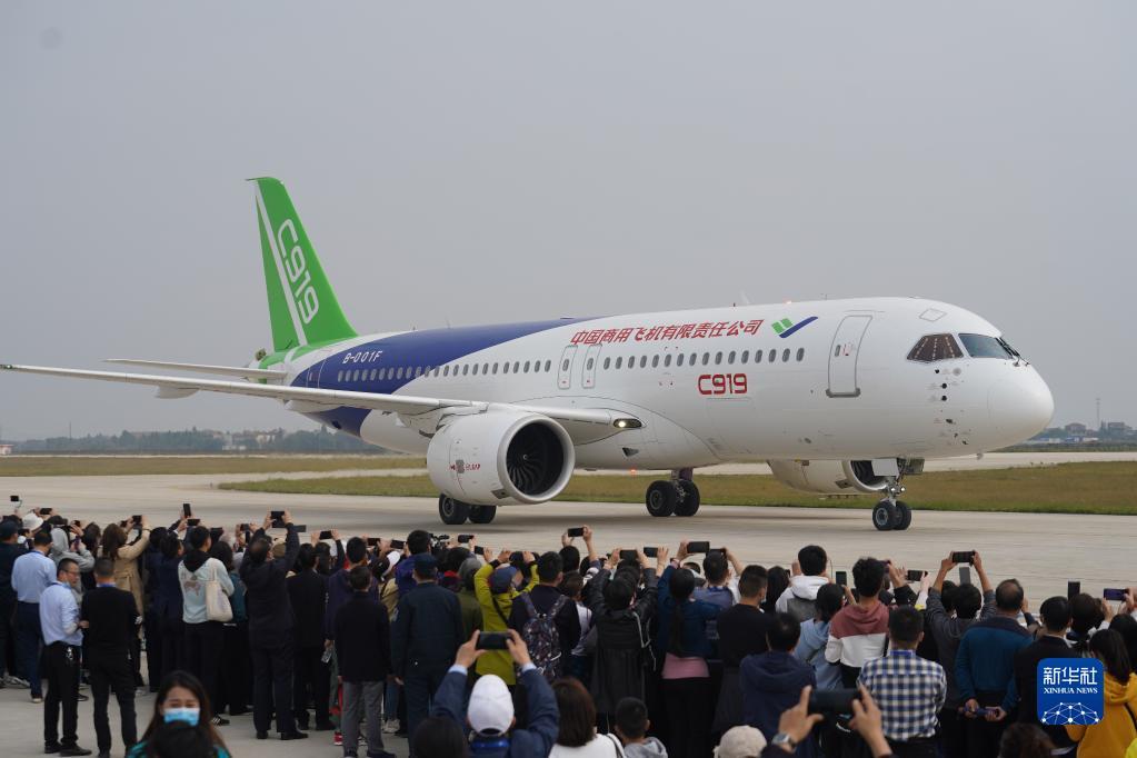 在2020南昌飞行大会上,国产大飞机C919亮相江西南昌瑶湖机场并进行飞行表演(2020年10月31日摄)。新华社记者周密 摄