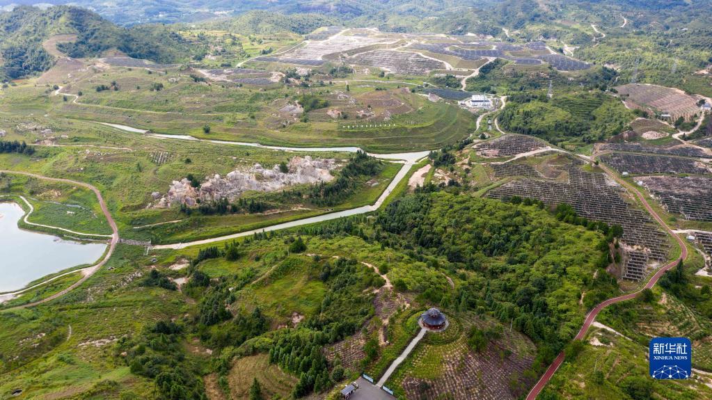这是位于江西省寻乌县文峰乡上甲村附近的生态修复区(2020年7月19日摄,无人机照片)。从前这里是大面积的废弃稀土矿山。新华社记者彭昭之 摄