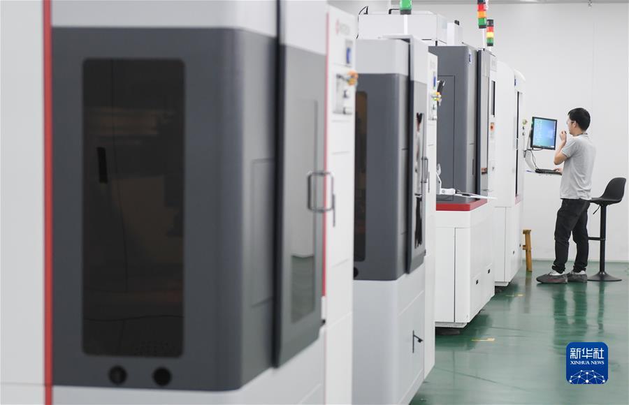 武汉华工激光工程有限责任公司员工在生产车间工作(2022年7月11日摄)。 新华社记者 程敏 摄