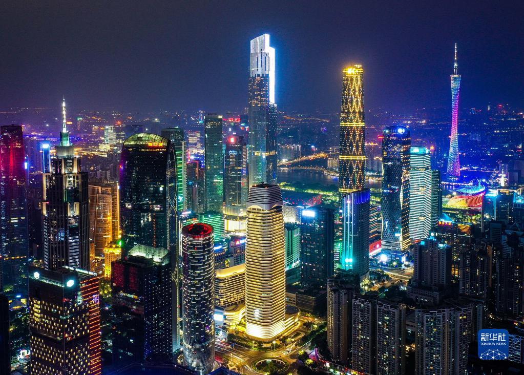 广州市珠江新城夜景(2020年10月2日摄,无人机照片)。新华社记者 刘大伟 摄