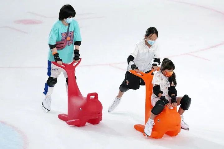 8月6日,人们在“冰立方”冰上运动中心体验滑冰运动。新华社记者 鞠焕宗 摄
