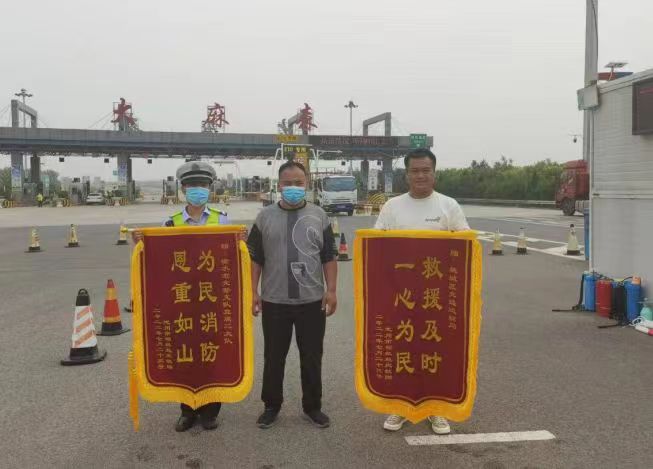 “幸好碰到了你们,要不然后果不堪设想!”8月12日上午,来自河北定州的大货车司机赵先生专程来到邢衡高速大麻森口交通检疫站,将锦旗送到值班人员手中,感谢他们及时灭火救援,帮他避免了重大财产损失。