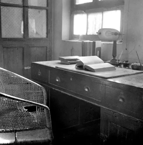 焦裕禄同志患着肝病,但他忍受了巨大的痛苦,仍然全心全意投到改变兰考县面貌的斗争中去。肝时时发痛,他就用手或硬东西压着肝部,继续工作,日子久了,他坐的藤椅,被顶出了一个大窟窿。新华社记者严世昌摄