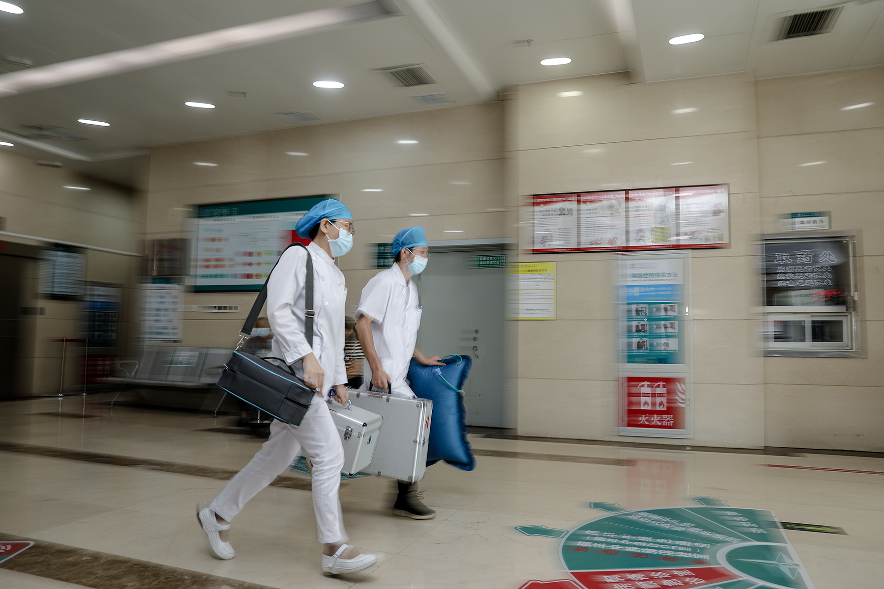 8月21日上午,市民在就医途中昏迷,急诊科医护人员迅速将其抬走救治。