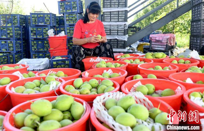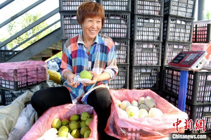 “在这打工不累,都是计件工资,一天能有100多元的收入,又不耽误家里的活儿,守着家挣钱的感觉很踏实。”正在地头进行雪青梨分装的冯塔头村村民葛彩珍说。