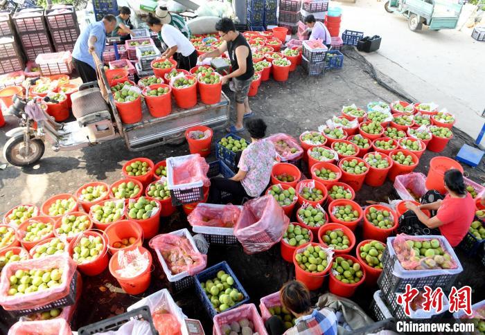 来自沧州泊头市的客商冯树龙说,“这里的梨品质好,客户反应不错,这时候上市,正好补充了当地水果的空档期,销路一直不错。”