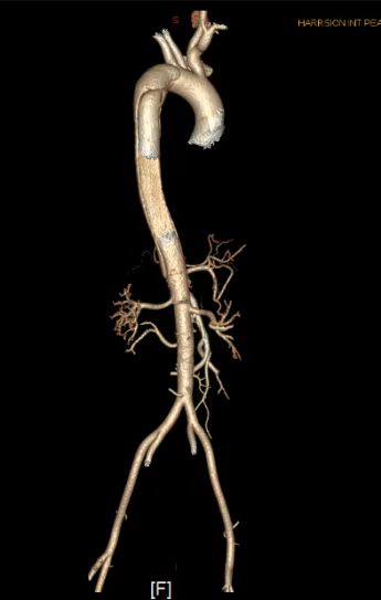 心血管外科医疗团队精心治疗,护理团队密切观察病情,在细致的饮食和功能锻炼下,患者恢复顺利,术后五天复查主动脉CTA,手术效果良好,康复出院。