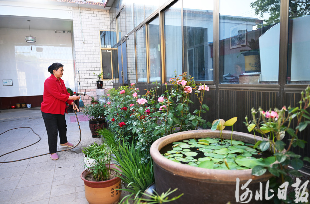 绿荫深处,青瓦灰墙,翠竹掩映,花开正浓,房前一角有凉亭,更有潺潺流水,这个既能“闲看庭前花开花落”,又能“漫随天外云卷云舒”的庭院就是衡水市冀州区码头李镇烟雾村崔爱英庭院。