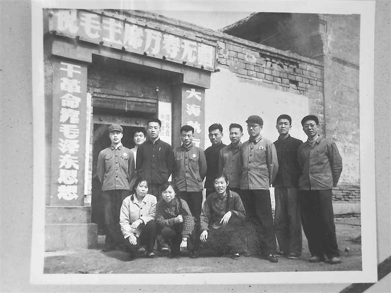 报社部分初创人员在旧址前合影。