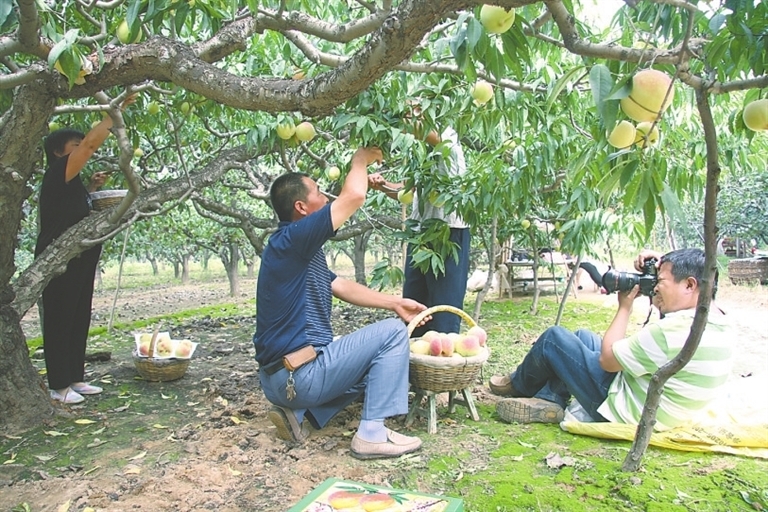 摄影记者在深州桃园采访。