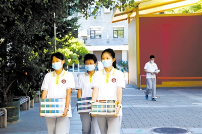 8月31日,北京二中高二年级学生在领取新课本。通讯员 周良 摄