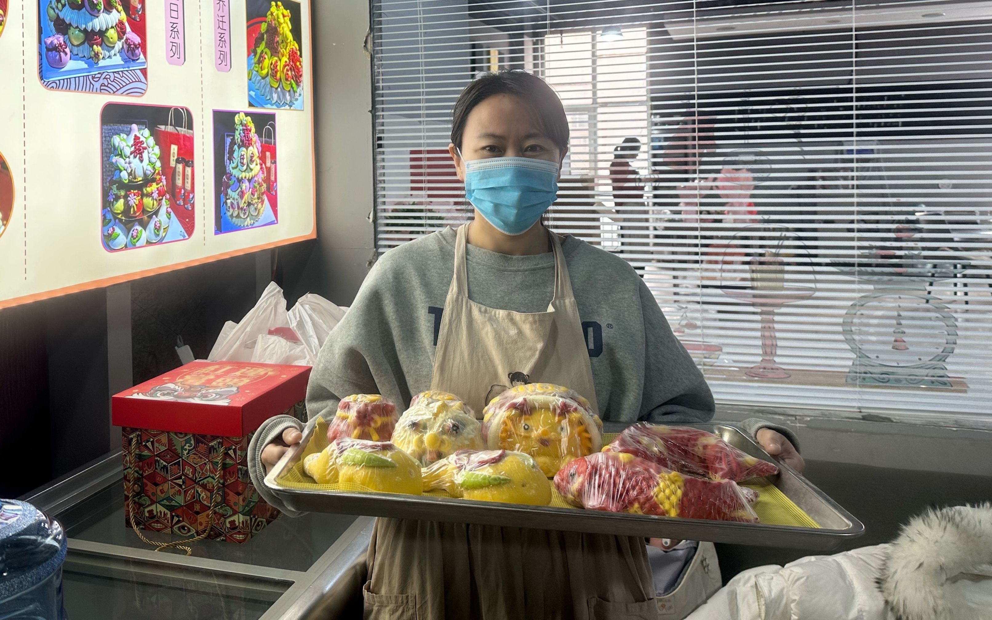解春红展示做好的“花饽饽”。