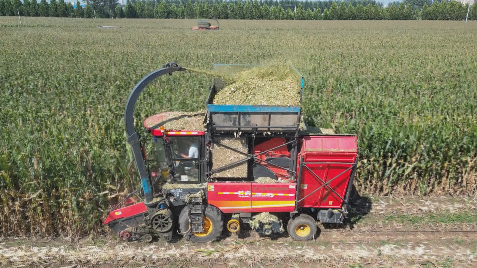 眼下正是玉米收获时节,在衡水市安平县乡村振兴示范区,随处可见正在忙碌的玉米茎穗联合收割机。与一般的玉米联合收割机相比,这种机械的个头儿明显要大一些,在收获玉米穗的同时还可以收集打包碎秸秆,一捆捆秸秆装满一辆辆货车,再运往养殖场制成饲料,让农民增加了一项额外收入。