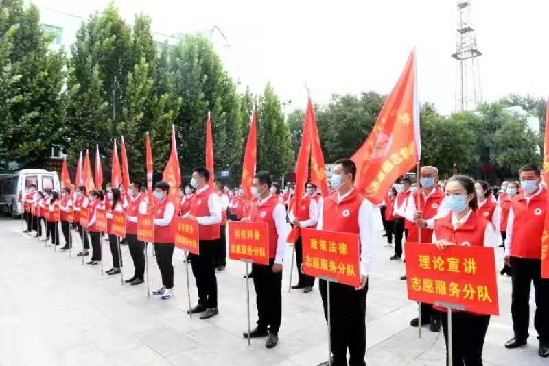 为进一步深化拓展新时代文明实践中心建设成果,充分调动各志愿服务队的积极性和创造性,推动文明实践活动深入开展,9月20日上午,饶阳县在宣传文化中心广场举行新时代文明实践志愿服务队授旗仪式。8支志愿服务支队、6支志愿服务分队和1支志愿服务大队的近百名志愿者到场。