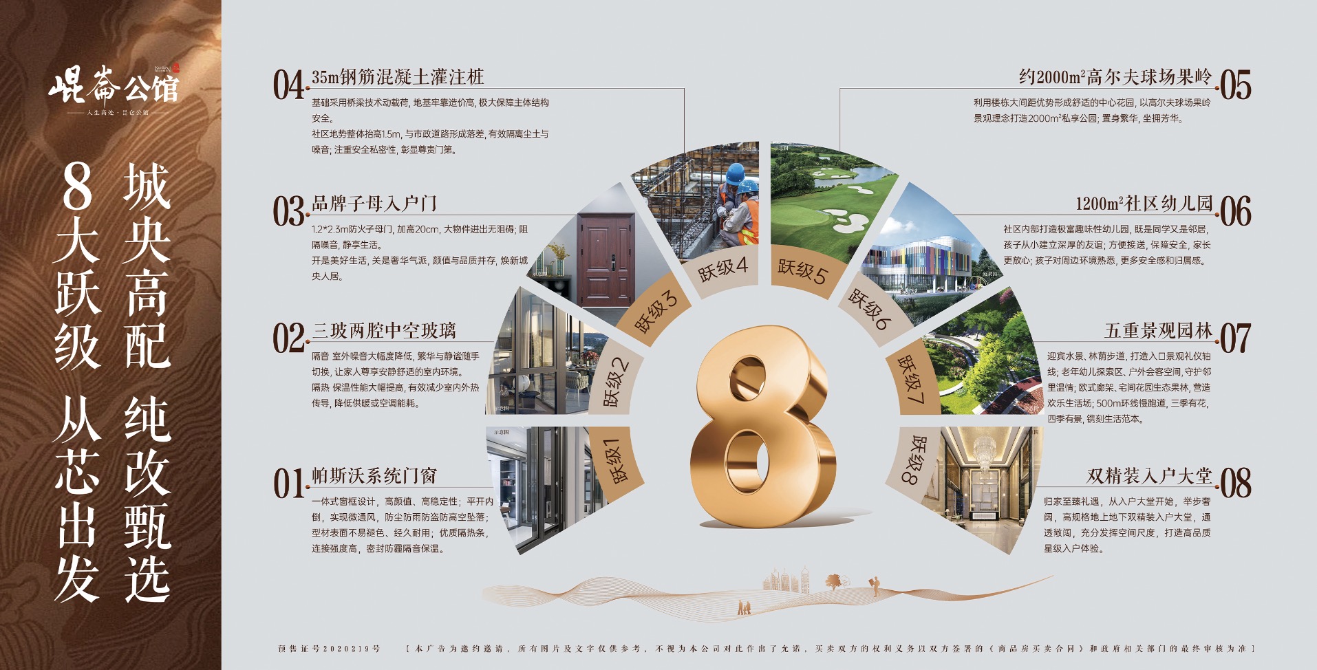 昆仑公馆位于衡水城芯位置,爱特商圈、醇熟配套,生活便捷,定位高定改善生活家。项目总占地约2.5万平米,总建筑面积约8.7万平米,绿化率40%以上,容积率2.5,规划有2栋花园洋房,24层高层3栋,一座1200㎡幼儿园。项目景观园林采用“一心、一环、两轴”的多重园林景观组团布局,社区自带500m休闲步道、2000m²高尔夫球场果岭、宅间花园生态果林种植区,三季有花,四季有景,镌刻生活范本。迎宾水景、林荫步道,打造入口景观礼仪轴线;欧式廊架、老年幼儿探索区、户外会客空间,守护邻里温情,营造欢乐生活场。双入户精装大堂、帕斯沃系统门窗、三玻两中空玻璃、子母入户门彰显昆仑公馆高定品质。