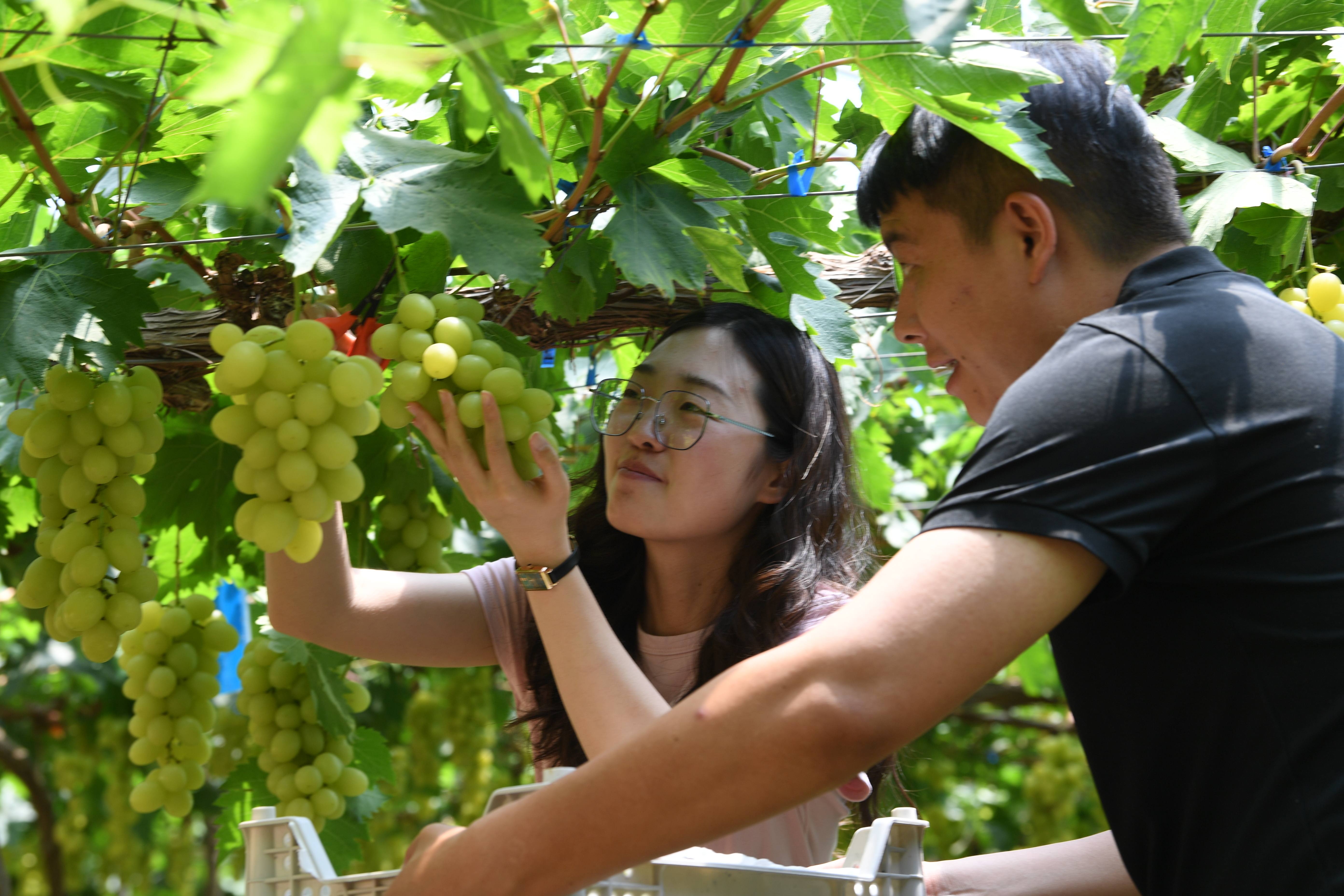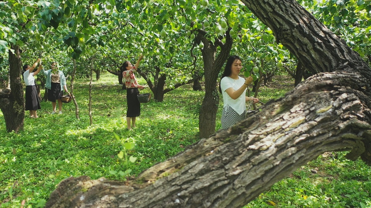 游客在梨园体验采摘乐趣。杜得天 摄