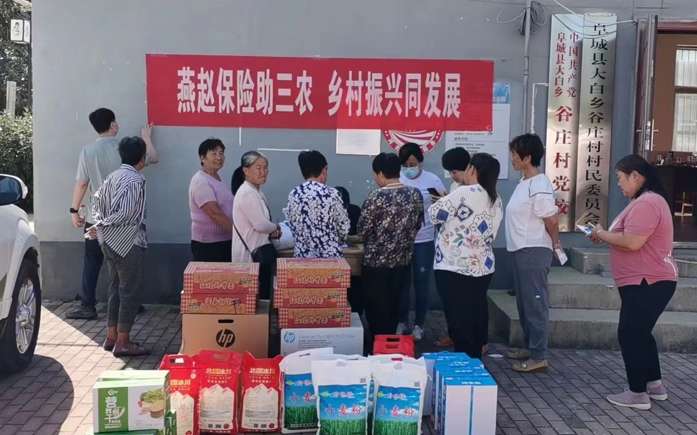 9月21日上午,燕赵财险衡水中支总经理白玉保亲自带队与班子成员李阳、阜城县机构负责人乔艳霞、个代一部赵磊等一行到阜城县大白乡谷庄村开展“燕赵保险进乡村活动”。