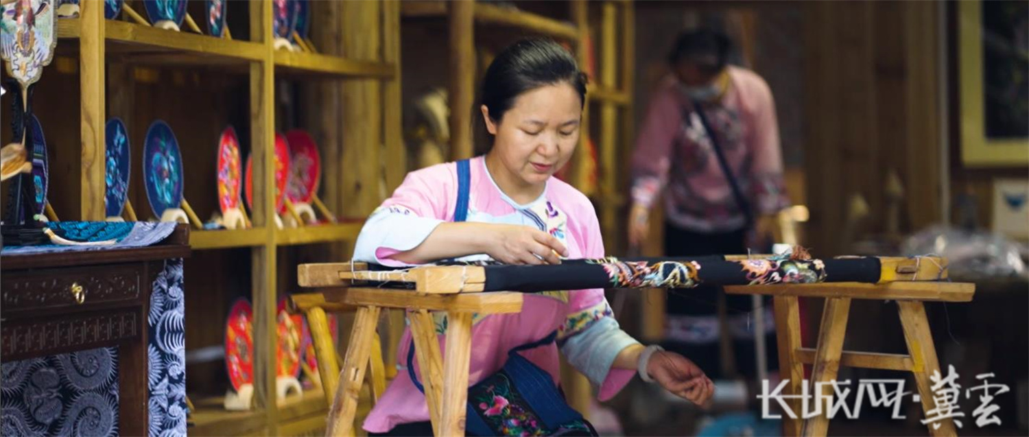 十八洞村因地制宜发展特色苗绣产业,带动妇女就业致富。刘佩尧 摄