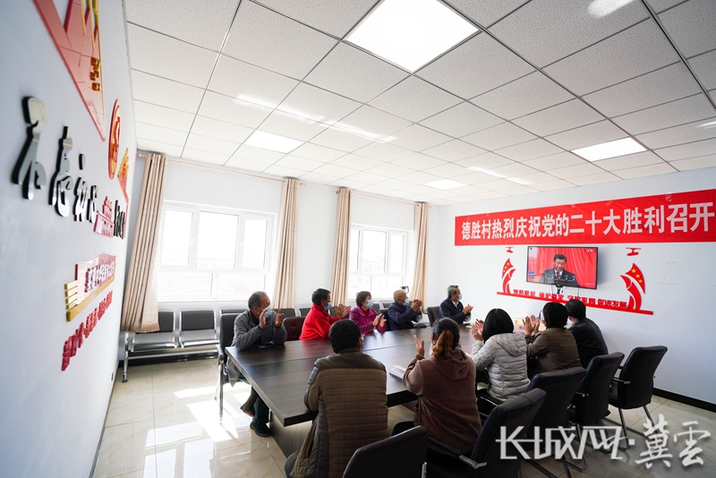 德胜村党员干部群众代表认真收看中国共产党第二十次全国代表大会开幕会。长城网·冀云客户端记者 郑世繁 摄