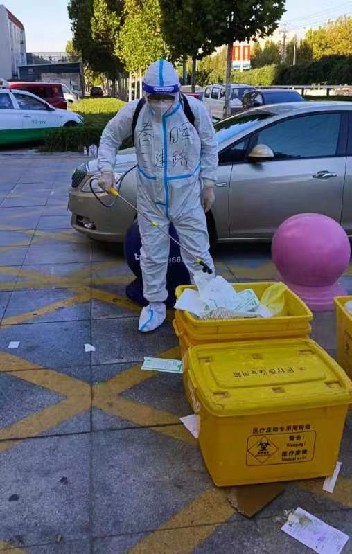 自衡水高新区部分区域管控之后,赵祺第一时间响应号召到社区报到,成为了社区的一名志愿者,投入到疫情防控一线中。上午负责配合医护人员上门采集核酸,下午配合小区运送物资、上门收垃圾清垃圾、进行消杀……