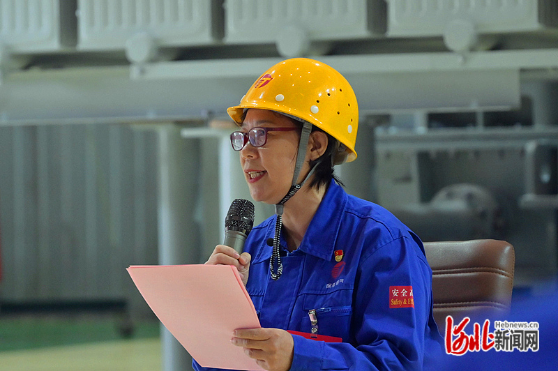 党的二十大代表、保定天威保变电气股份有限公司创新工作室带头人戚红正在宣讲党的二十大精神。 河北日报通讯员崔刚摄