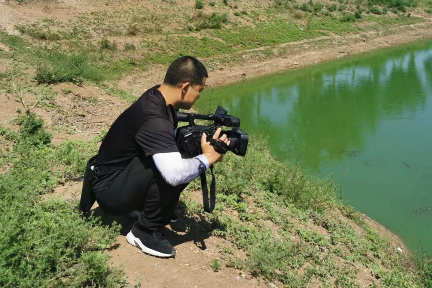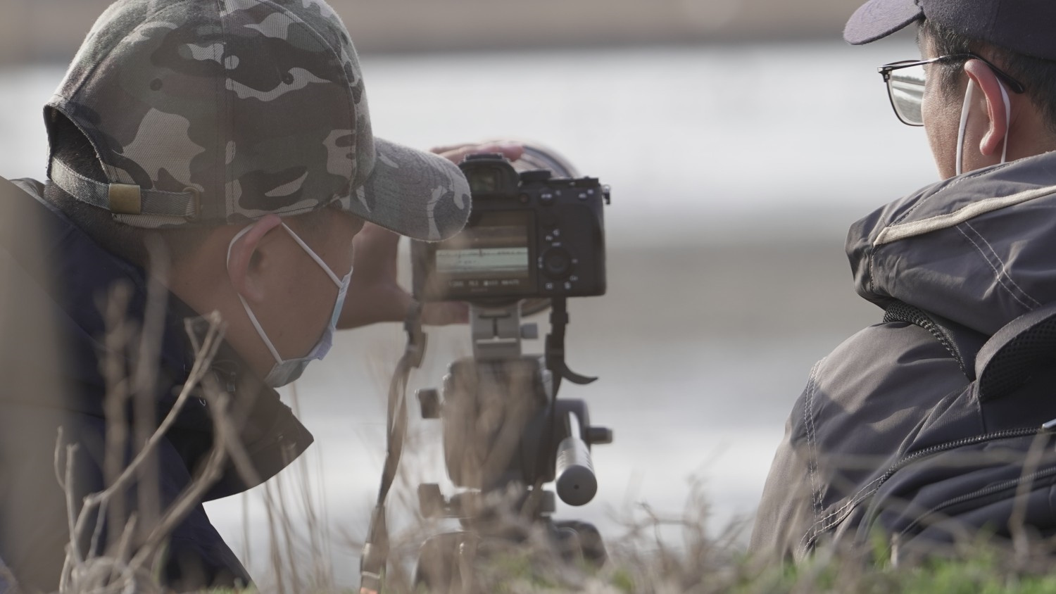 拍摄专题片《湿地鸟欢歌》。冀州区融媒体中心供图