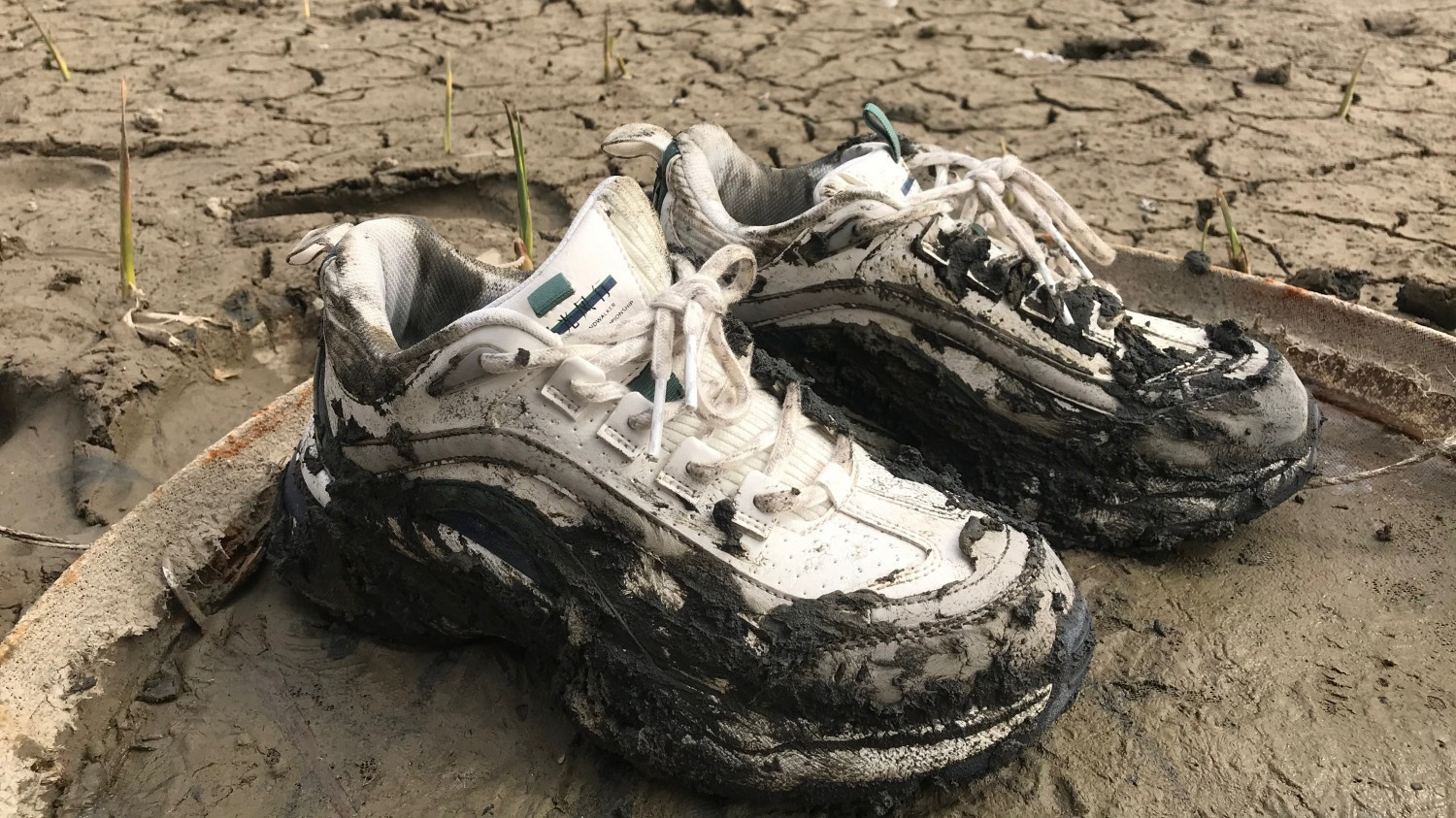 拍摄衡水湖鸟类后记者泥泞的鞋。冀州区融媒体中心供图
