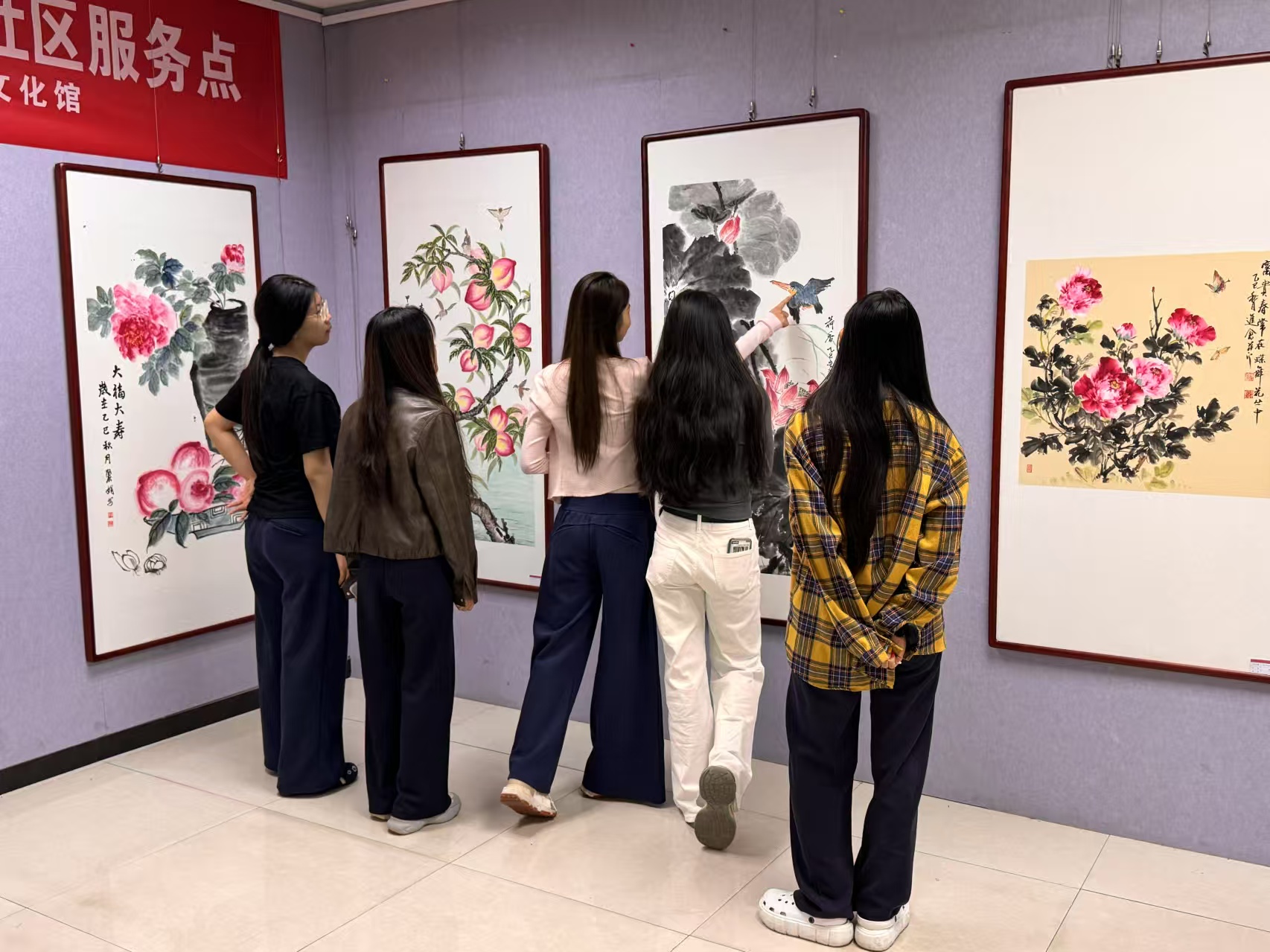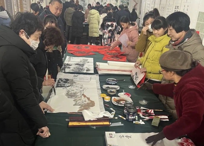 参观者驻足欣赏书法绘画作品。李晓宇 摄