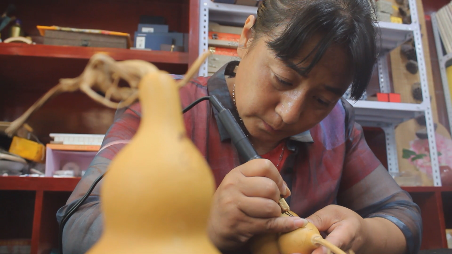 47岁的王维静为河北省工艺美术家,非遗传统烙烫画工艺第五代传承人,还是一位多产的工艺美术家,她于2020年撰写并出版《圣姑传说》,她的葫芦烙画作品于2021年代表衡水参加“2021一带一路长城国际民间艺术节”,同年代表河北省非遗分别参加苏州国际博览会举办的大运河非遗文化展览和武汉国际博览会首届非遗展览等。
