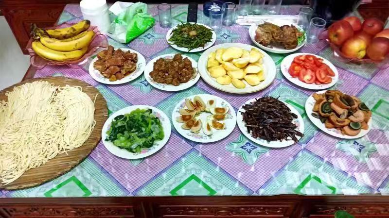 12月4日天刚蒙蒙亮,蔡旭哲的父母便早早起床开始打扫卫生、收拾床铺,姐姐蔡旭娜专门买来菜和肉,蔡旭哲的三叔蔡占松更是特意从深州城里骑自行车来到二哥家,打算和家人一起见证神舟十四号平安返回地球这神圣的历史时刻。当天,蔡旭哲的家人们紧盯电视屏幕,时刻关注着神舟十四号载人飞船返回的动向。晚餐时间,蔡家在饭桌上特地准备了十个菜,寓意十全十美,其中一盘红彤彤的苹果特别显眼,取其“平安归来”之意。俗话说:“出门的饺子回家的面。”蔡旭哲的母亲亲手擀了面条,她表示,虽然儿子不在身边,但母亲的这份心意不能少。“等孩子回来了,我给他炖肉,好好补补身子。”看着一桌子蔡旭哲喜欢吃的饭菜,母亲不断念叨。