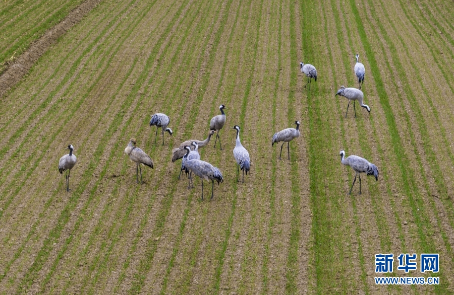 离开冰面,灰鹤迈着悠闲的步子在田间嬉戏觅食,给冬日的农田增添了别样的生机。新华网发 陈康 摄