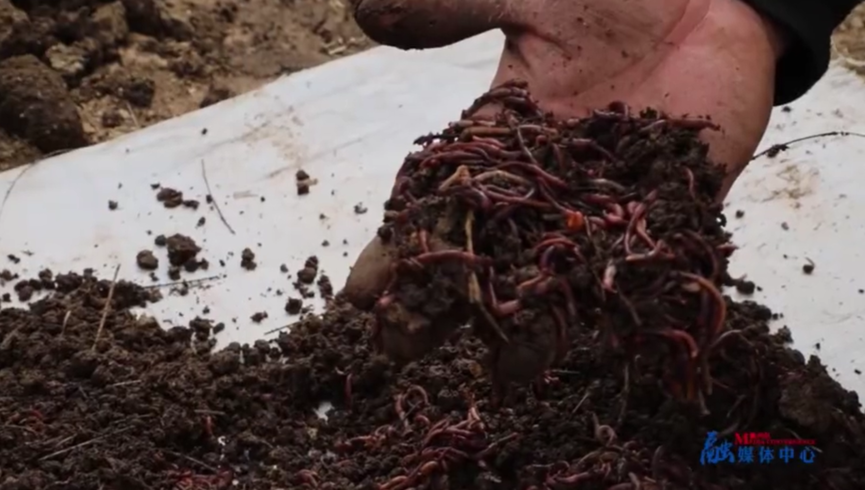 “这些准备发往全国各地的林地蚯蚓浑身是宝,它们既可以做成鱼饵、饲料,也可以提取药物,养完蚯蚓的粪土同样可以卖给种植大户当有机肥,真正实现了‘一举两得’。”蚯蚓养殖基地负责人李育兵说。