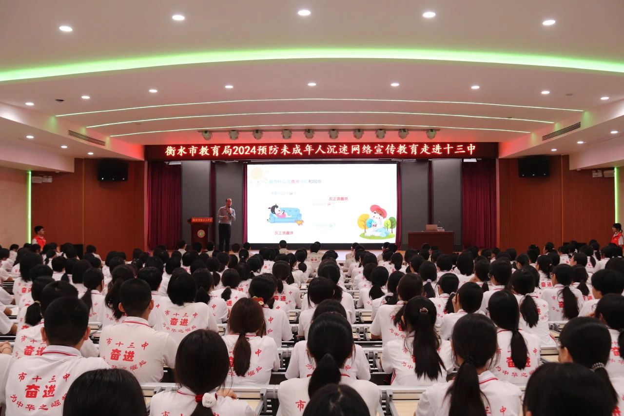 此次活动由市委网信办主办,桃城区委网信办、区文化馆协办。活动中,网信工作人员采用专题授课的形式,通过鲜活的案例生动形象地向同学们讲解了上网成瘾的特征、成因以及解决对策,提醒同学们要善于网上学习,不浏览不良信息,不沉溺虚拟世界,引导他们文明上网,牢固树立文明上网、绿色上网的意识。最后,工作人员带领同学们共同朗读学习了《河北省网络生态文明公约》,号召大家文明上网、文明用网,自觉抵制网络不文明现象,远离沉迷网络游戏等不良行为。