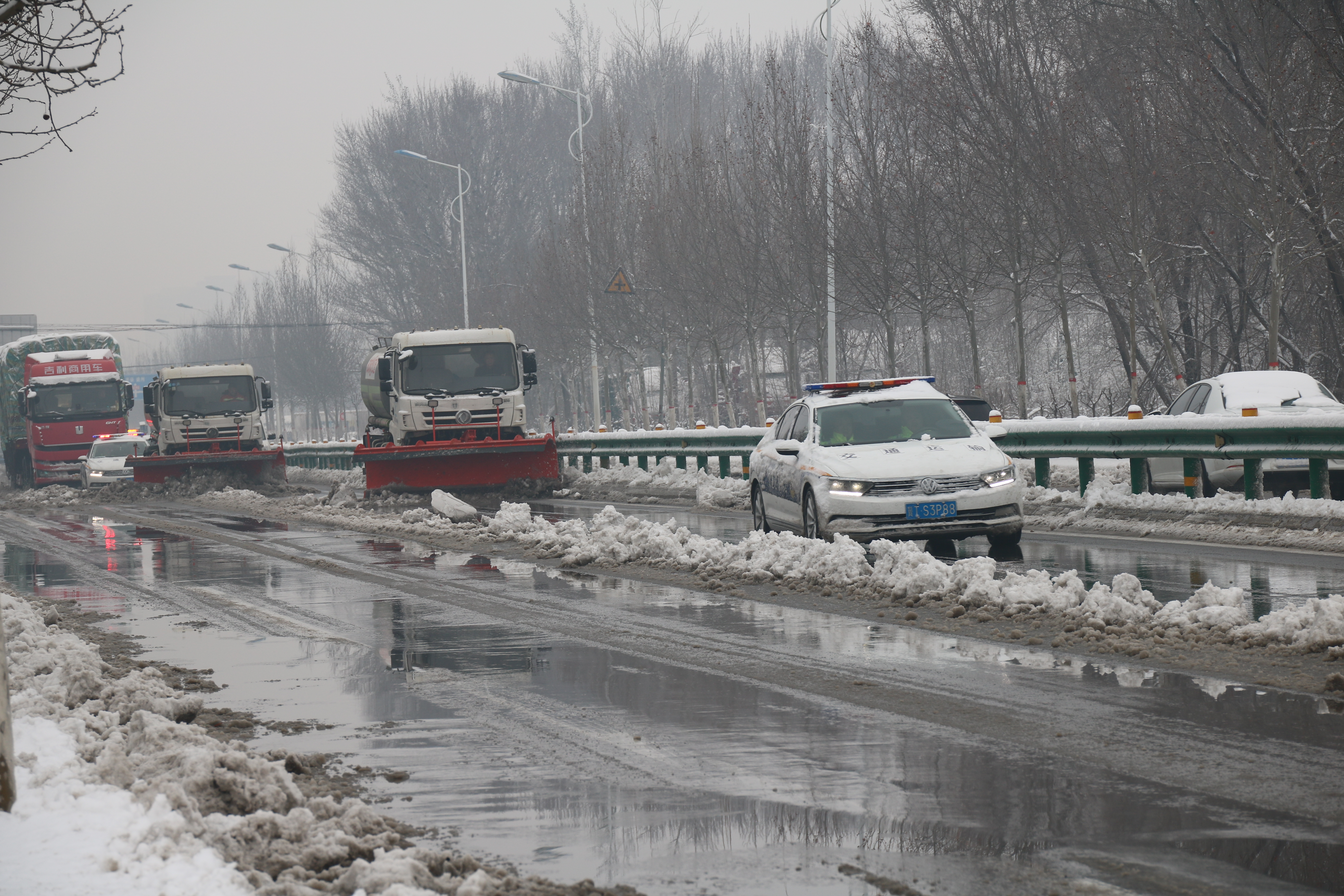 当日一早,衡水交警全警上岗,根据应急预案部署,迅速赶赴通行条件差、易拥堵、易积水路段,引导指挥行人和车辆安全有序通行,帮助水中车辆脱困,全力做好交通疏导工作。同时,根据道路实际情况,果断对主城区中华大街地道桥、育才大街地道桥等路段实施断交管控,保证群众出行安全。交警支队各部门充分发挥职能,指挥中心通过视频巡控、数据分析,精准向执勤交警发布疏导指令,通过近端控制、远端提示、多点分流的方式,最大限度保证路口通行能力;秩序部门、事故部门与指挥中心联勤联动,密切配合,做到警力跟着警情走,全力做好事故后应急处置工作,快速恢复交通,防止发生二次事故和严重交通拥堵;交通设施维护部门严格执行24小时值班备勤制度,做到及时对市区损坏的信号灯、标志等交通安全设施进行抢修,确保雨天辖区道路交通形势平稳。为使群众及时了解市区路况信息,衡水交警通过新媒体、与电台连线等方式,实时发布路况,提供断交路段信息及雨天出行提示。