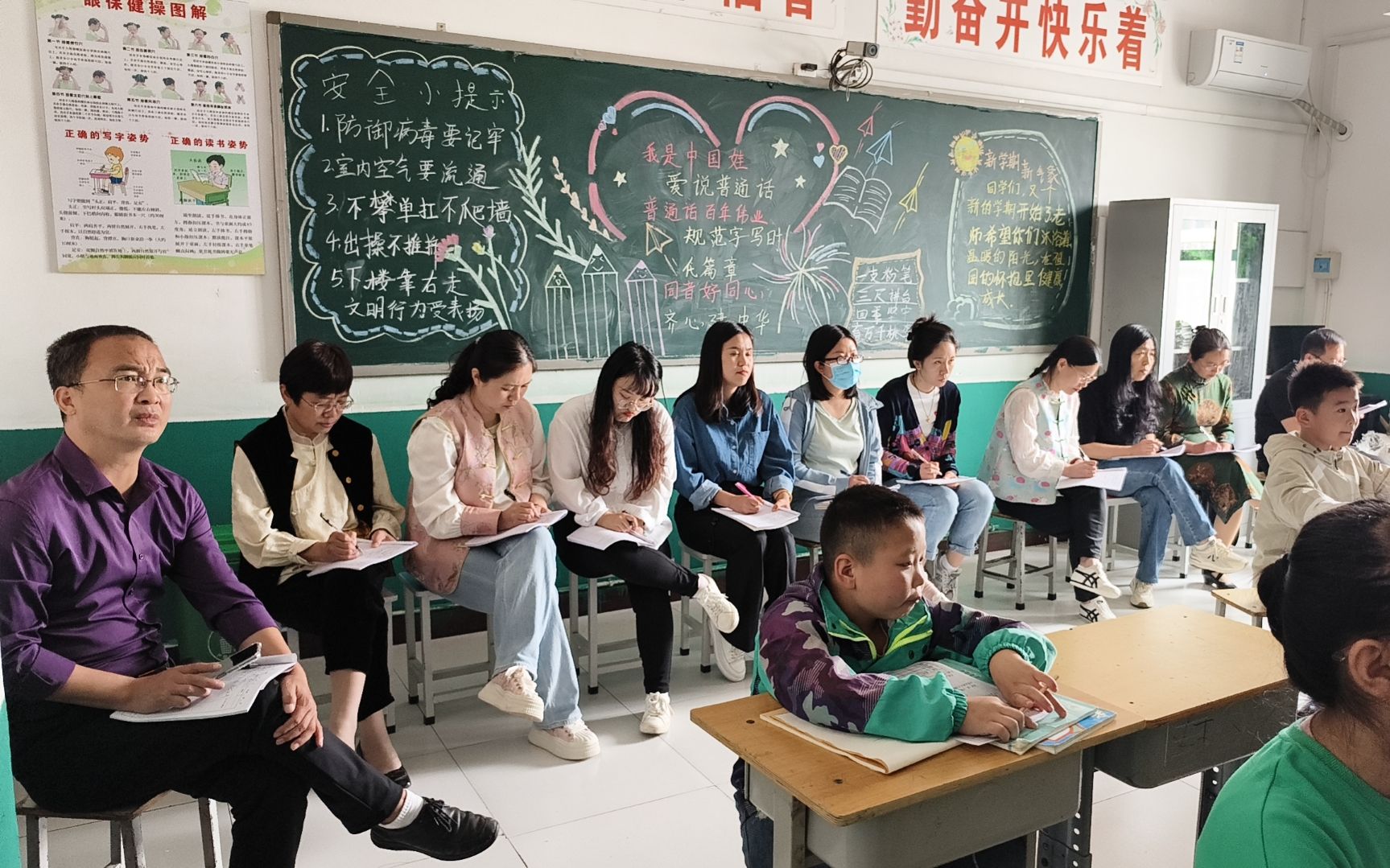 学生们创作的“无废”主题黑板报。张占祥 摄