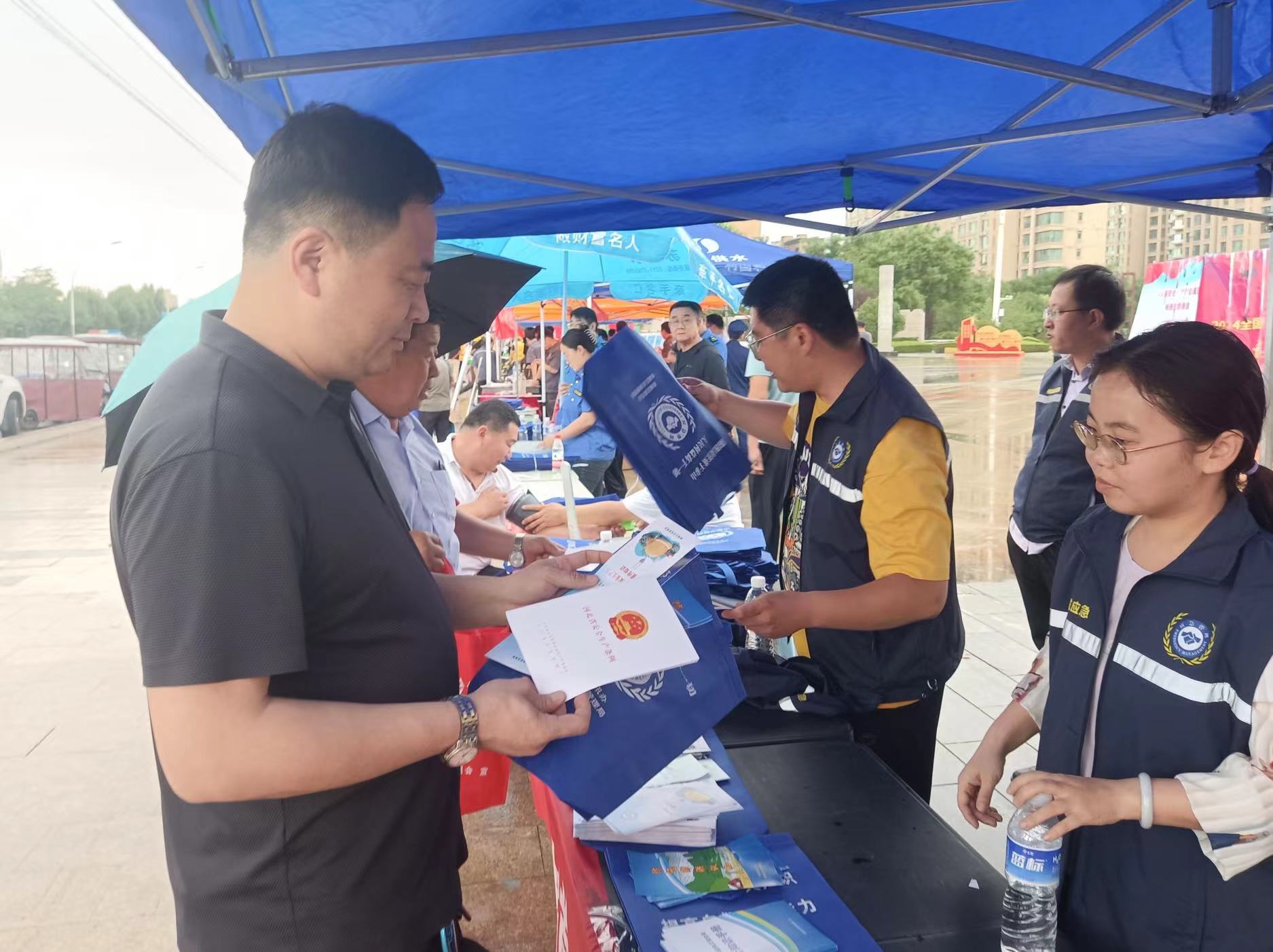 工作人员现场发放消防宣传彩页。刘祎程 摄