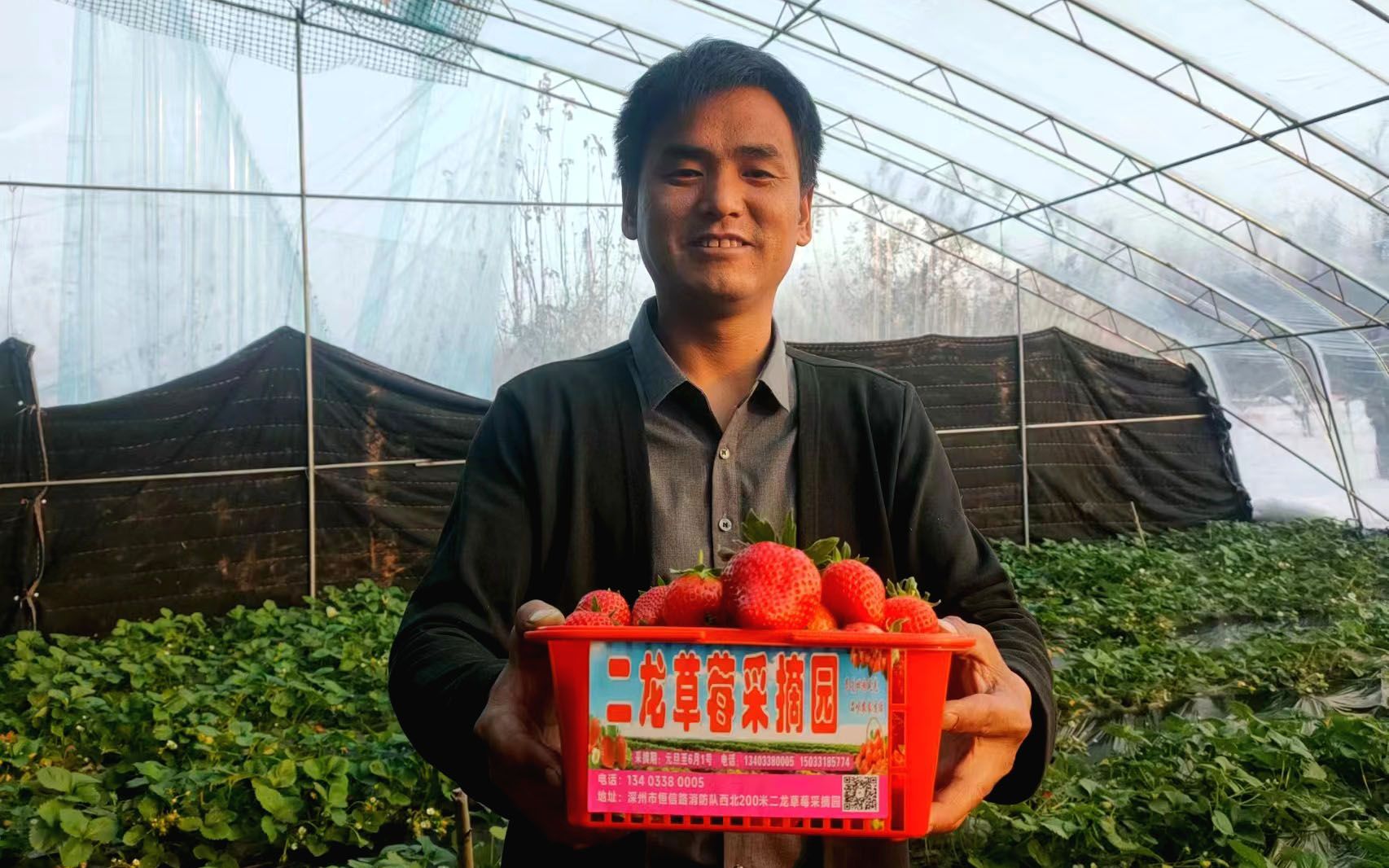 2023年,陈二龙扩大了规模,种植12亩地7个大棚的草莓,有红颜九九、淡雪、藏香、香妃等7个品种。陈二龙的新年愿望,就是希望来年天天都是好天气,他的草莓园游客多多,日子越过越红火!