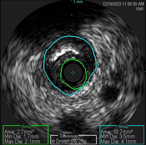 应用血管内超声精准测量。