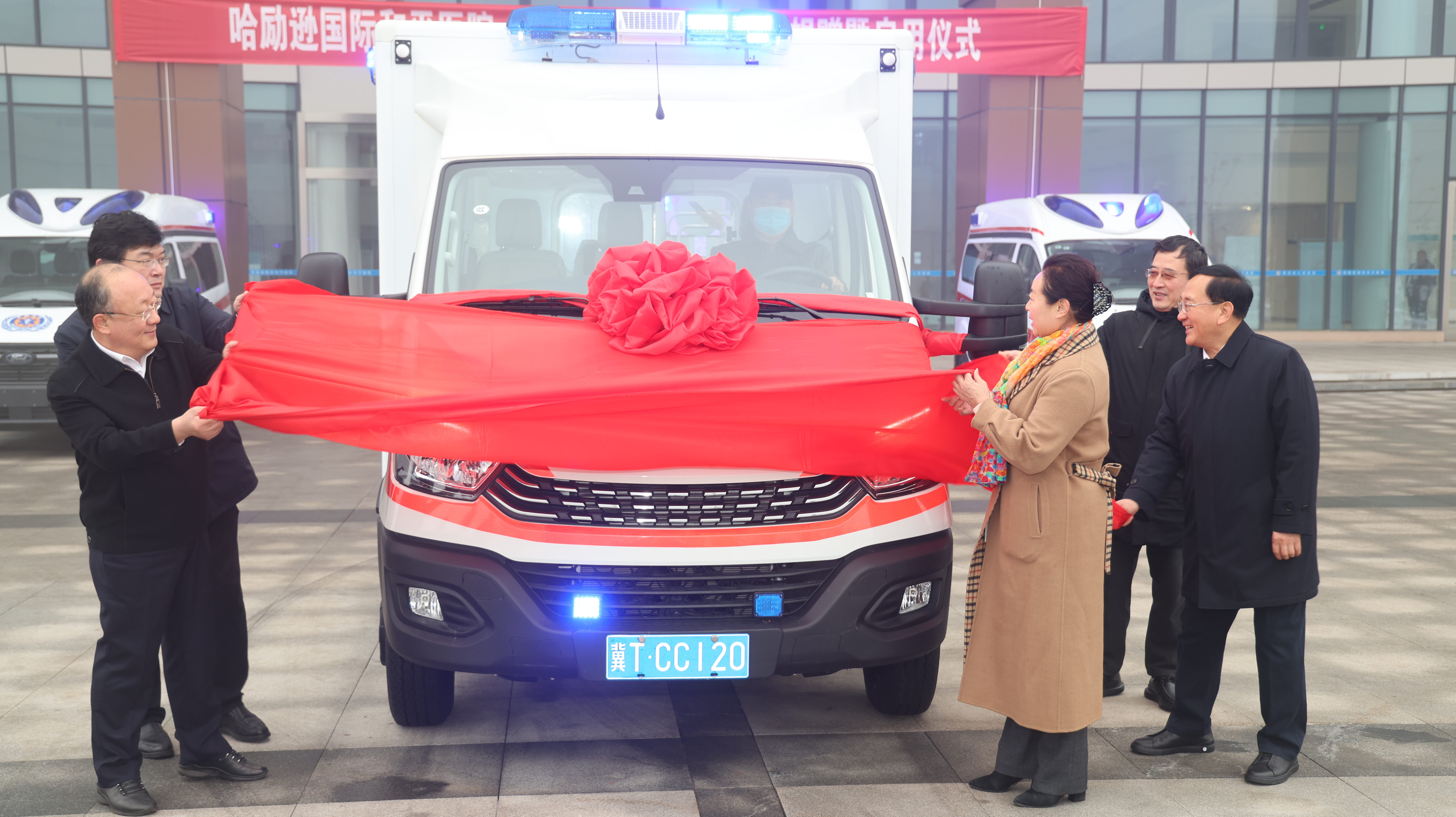 衡水市人民医院(哈励逊国际和平医院)5G重症监护救护车捐赠暨启用仪式现场。