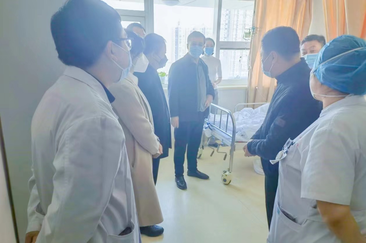 哈院与衡商总会启动“健康直通车”应急联动机制,及时为会员企业家的老人搞好诊疗服务。图为衡水市工商联一级调研员李兴华、哈院运营部主任杜智勇等探望老人,向病人及家属转达了衡商总会和哈院领导的问候和祝福。