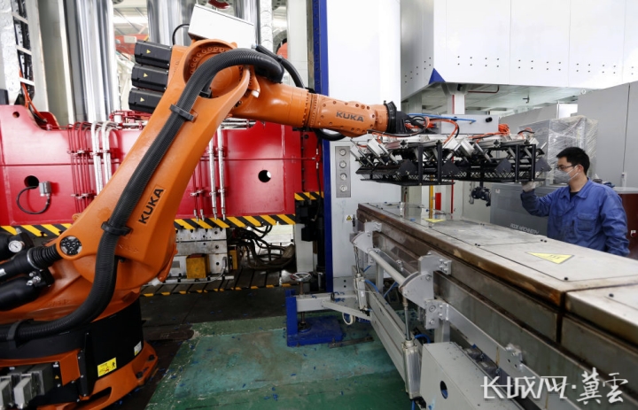 恒润集团有限公司工人在检查热塑性模压生产线机械手。来源:恒润集团有限公司