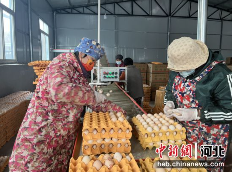 近日,走进河北省深州市辰时镇一蛋鸡养殖基地,一枚枚新鲜的鸡蛋随着传输带缓缓移动,从鸡舍输出,送至包装车间进行装盘、打包。