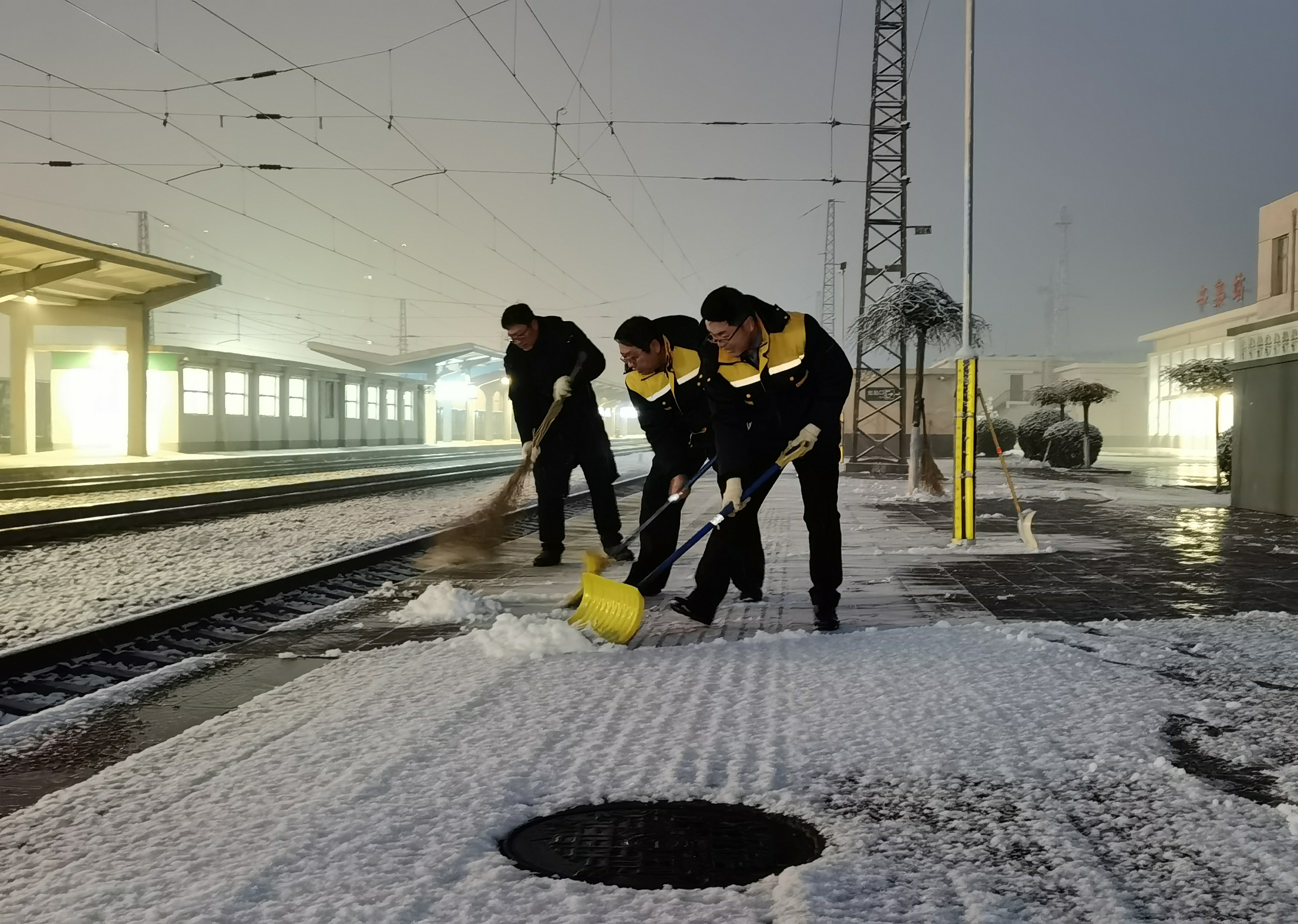 当晚,衡水车务段管内31个车站的36支除雪队伍,以雪为令,按照应急预案第一时间赶赴除雪区域和地点,迎战降雪对铁路运输造成的不利影响。清扫道岔区、调车场、旅客乘降场所和必经之路,做到随下随扫,雪不停人不歇,分组轮换,连续奋战。