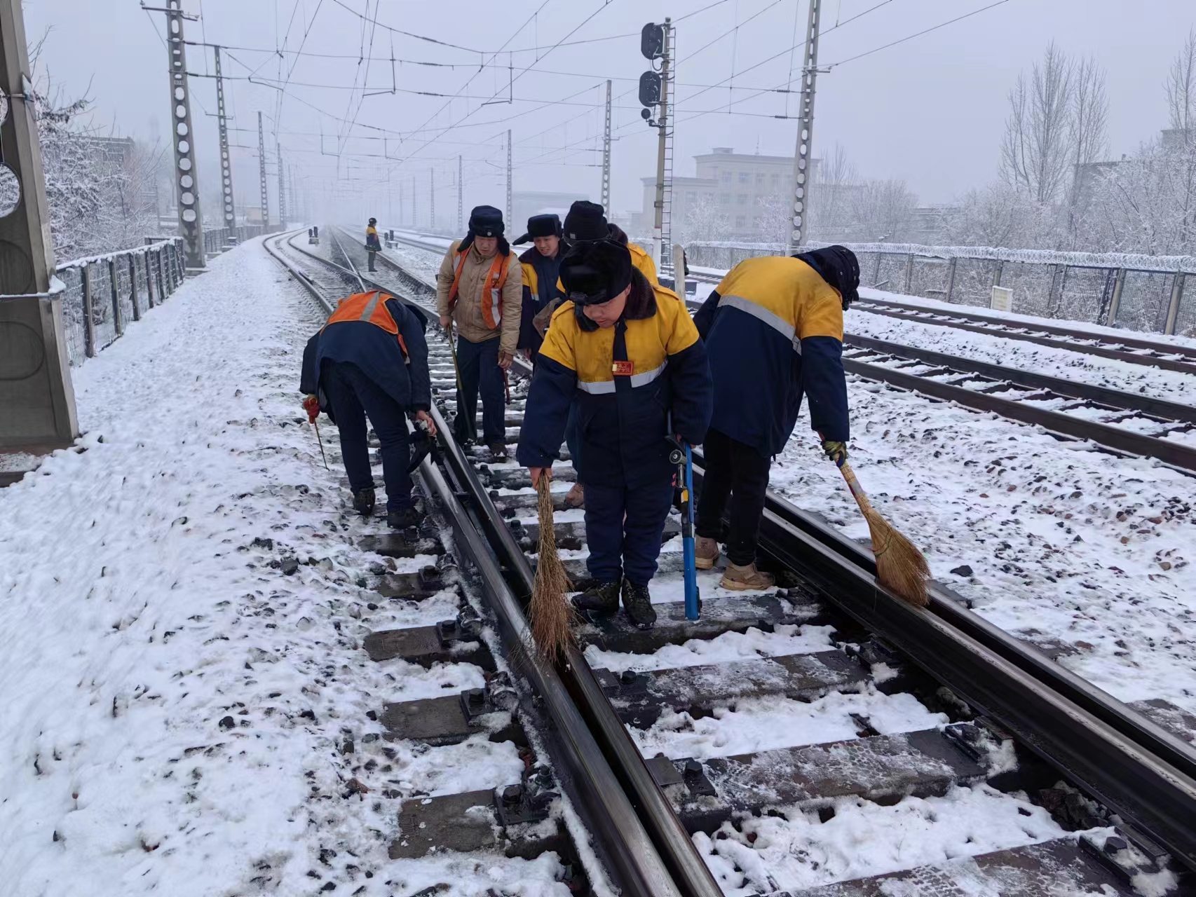 “道岔转动灵活,密贴到位”“列车接近,下道避车” ……17日凌晨1时20分,衡水站东咽喉区内人影攒动。有的手拿扫帚,有的手拿铁铲,有的身背鼓风机,趁着每列列车通过后的时间,大家迅速奔向组组道岔,清扫落在道岔上的积雪。