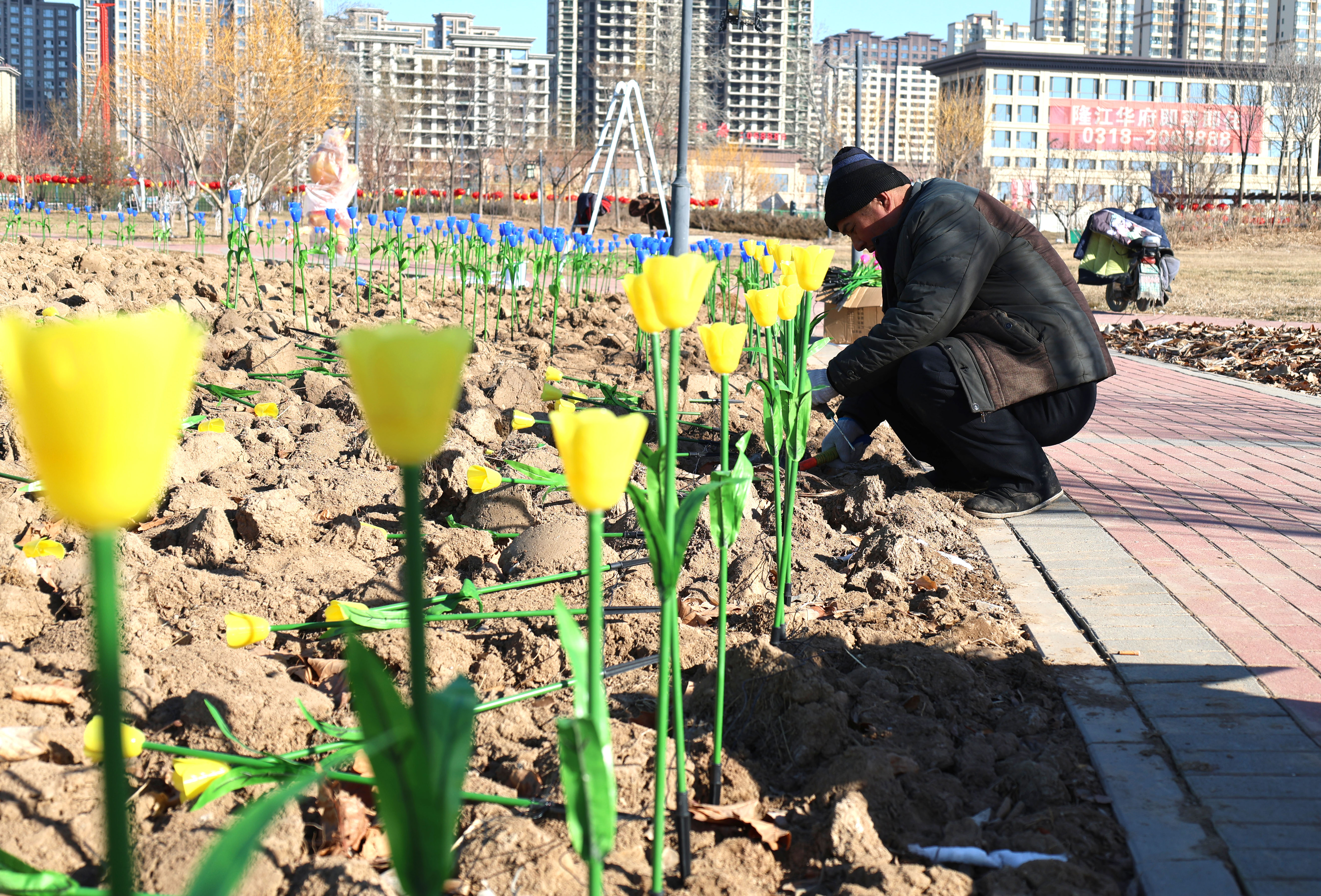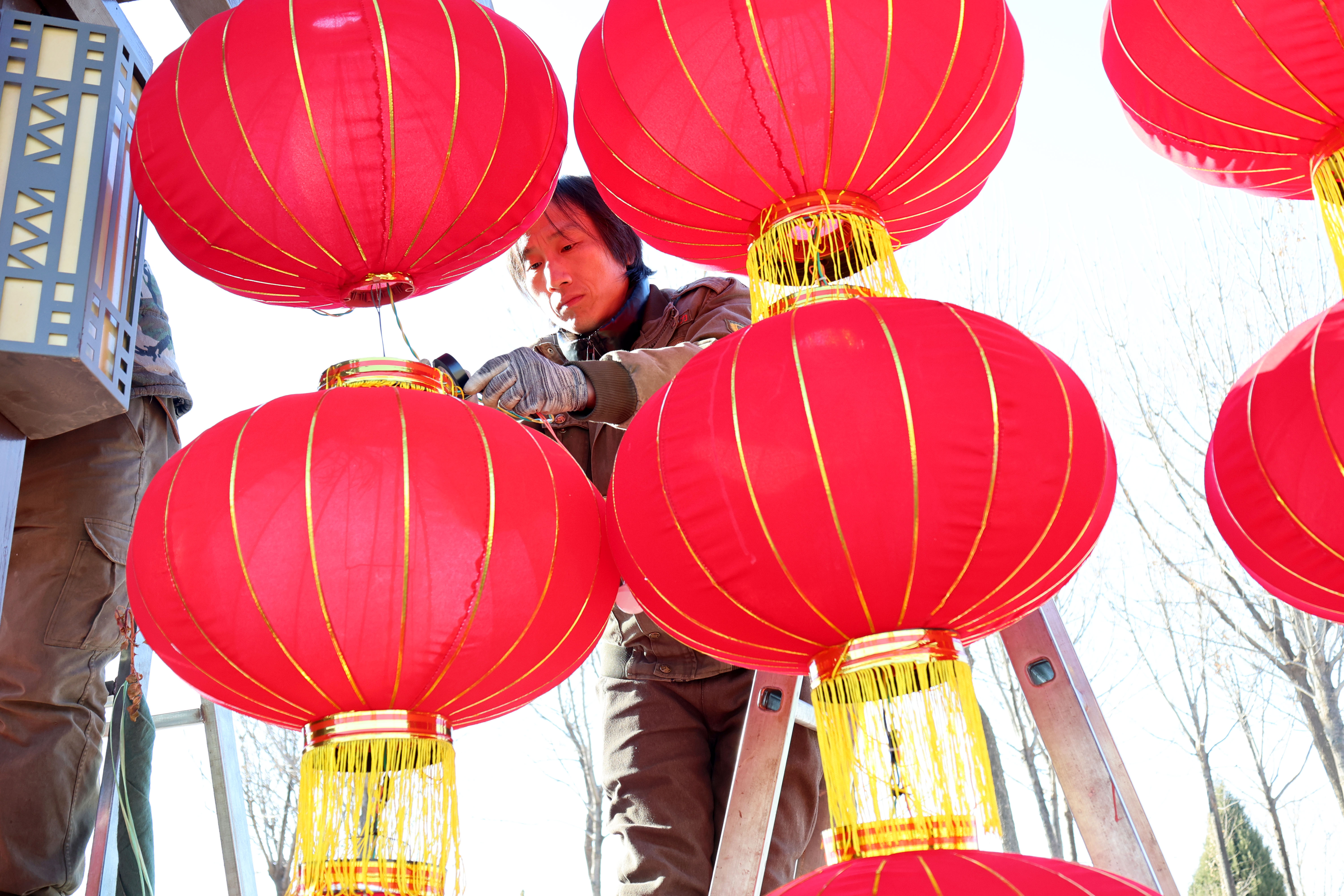 在风雅文化园区周边,十二生肖系列、国潮系列的花灯已经挺立在公园内,仿佛正等待着游客们的到来。届时,大家可以在这里进行拍照打卡,体验传统花灯与潮流时尚碰撞带来的乐趣。此外,还有寓意祝福、珍惜眼前幸福和爱情的郁金香、玫瑰花花海区,工人们正在安装郁金香、玫瑰花花灯,为灯会期间的“千人相亲会”做准备。