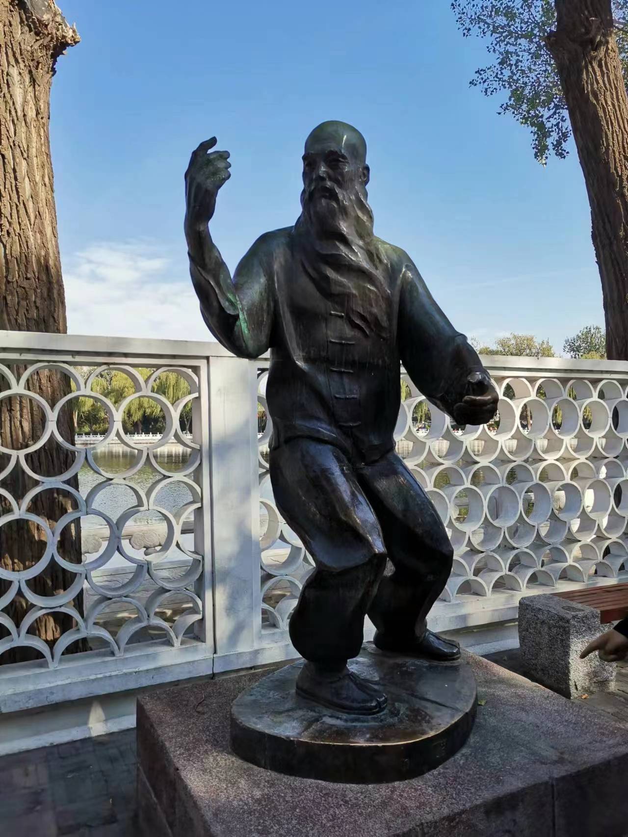 多年来,一拨又一拨“到此一游”的游客们心生纳闷——雕像的原型是谁?偌大一个京城,武术家名流荟萃,此人何德何能,能在寸土寸金的风景区占据一席之地?曾经有“北京胡同游”的导游信口开河讲解一番,雕像原型是太极拳创始人陈王庭,又有人说是一代宗师张三丰、杨露禅等等,众说纷纭,听者一头雾水。