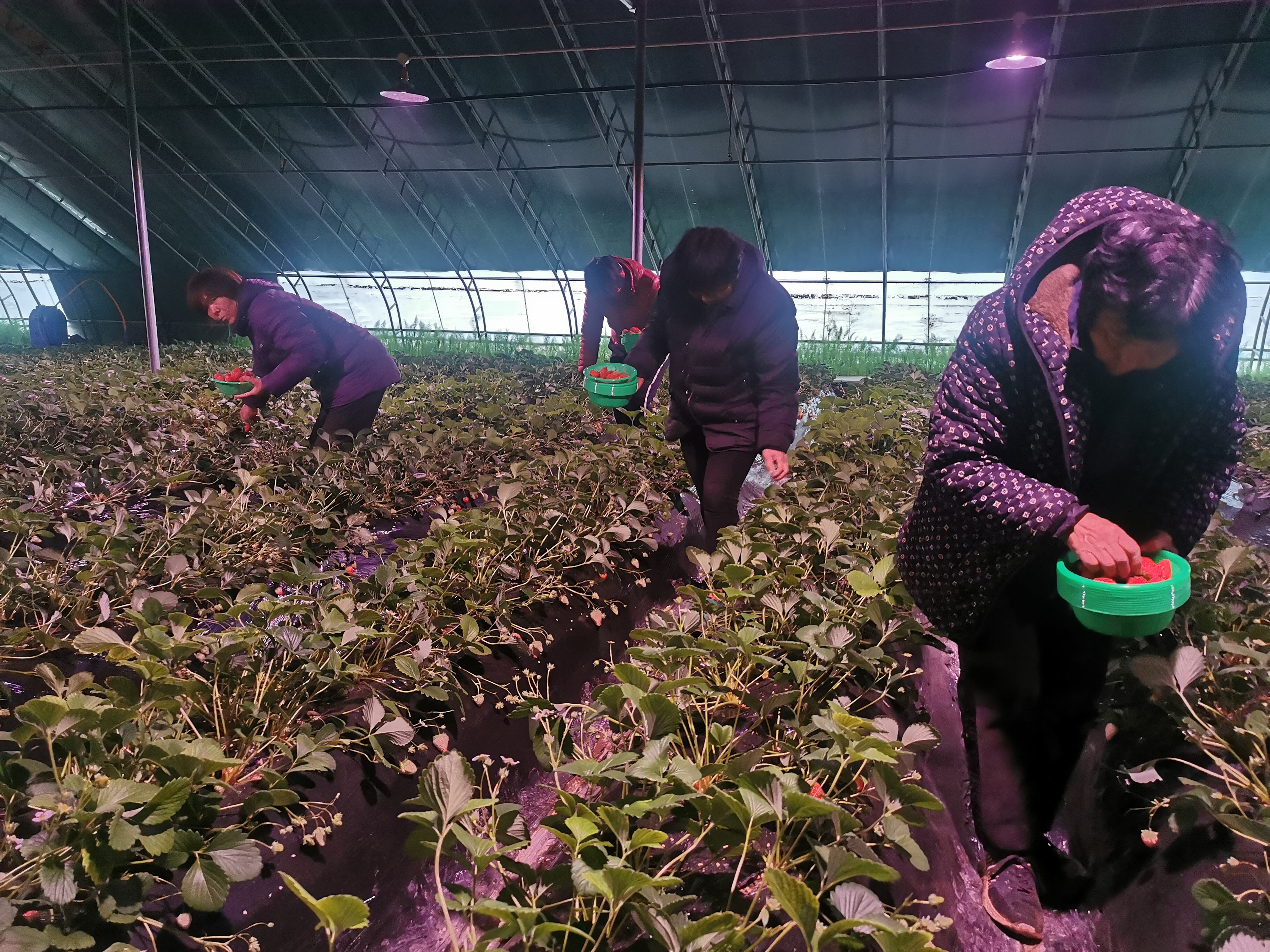 早上九点钟,工人给大棚开棚,卷起大棚上的棉被,让草莓享受阳光的同时,也开始了一天的忙碌。