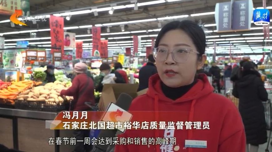 在春节前一周会达到采购和销售的高峰期,我们北国超市已做好充足的备货量,能够满足市场供应,我们会对所有蔬菜水果等农产品进行农药残留检测,保证市民能够吃到更放心的蔬菜 。