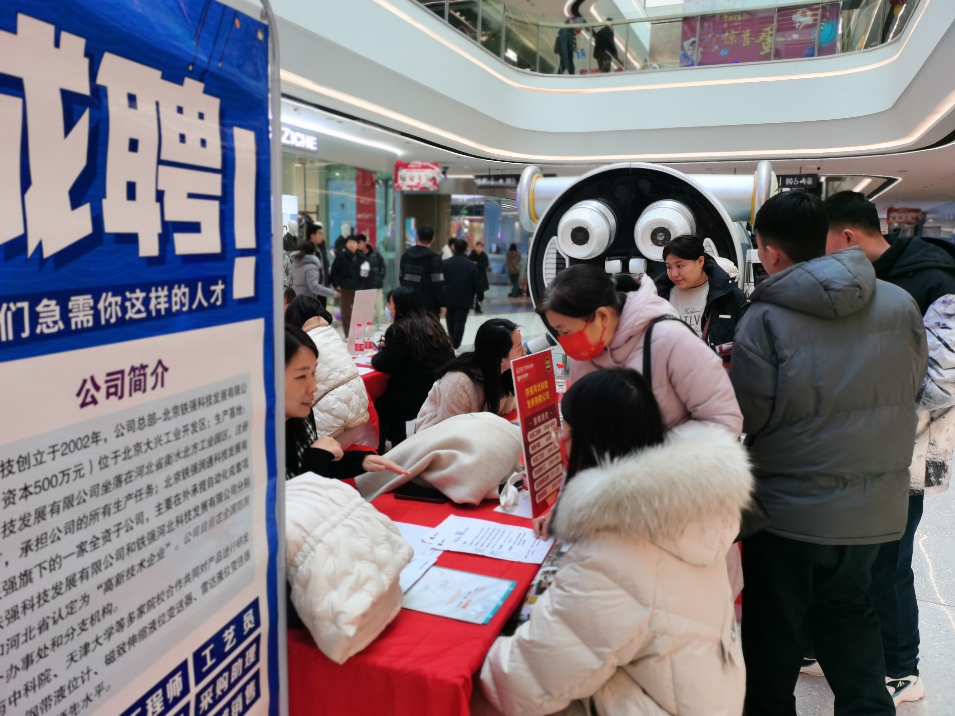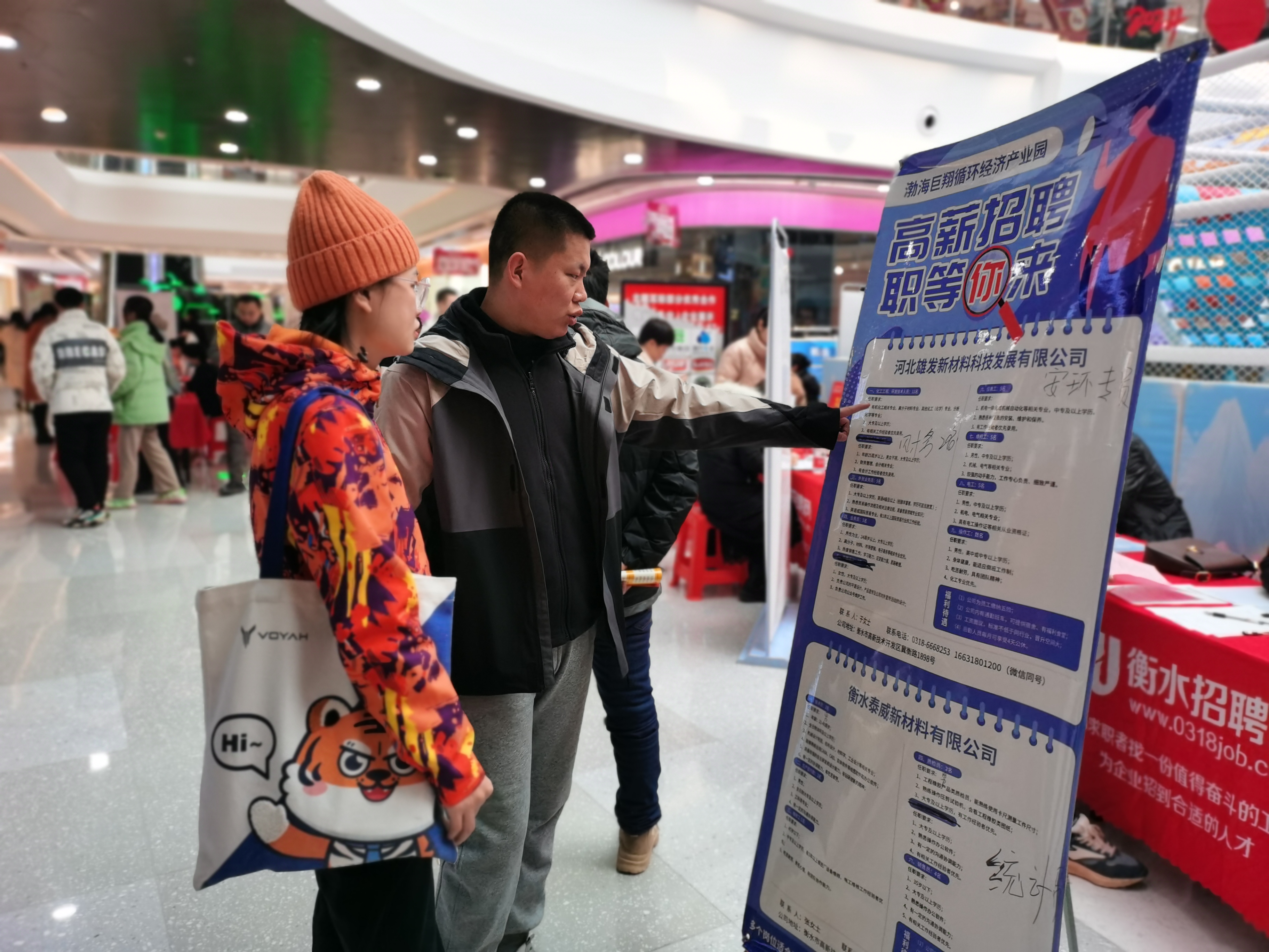 2月14日,大年初五。市区各大商圈人潮涌动,洋溢着喜庆气氛。在人来人往的爱琴海购物公园、桃城万达广场,一阵促就业的“春风”为供求双方送来融融暖意。“春风送岗促就业 精准服务助发展”衡水市2024年春风行动大型招聘会在这里举办。