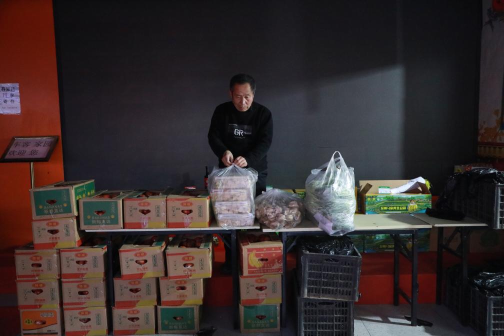 张东明在收拾摊位,为迎接顾客做准备。新华社记者邹尚伯 摄